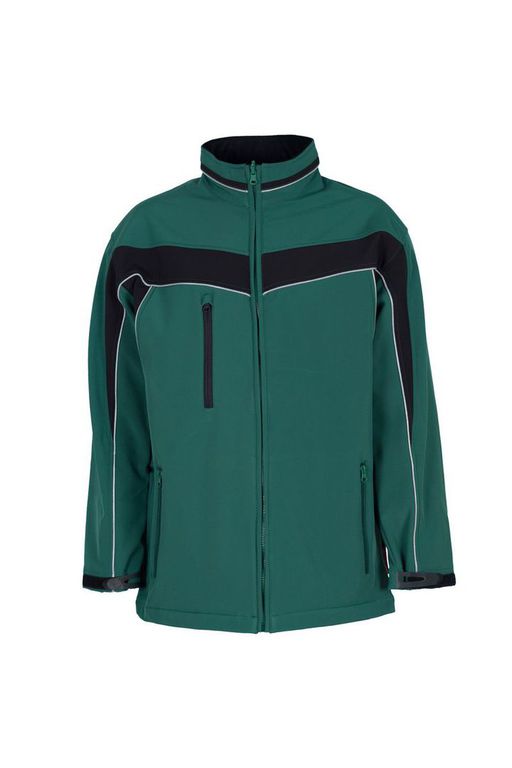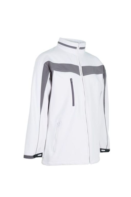 Soft und sicher. Wasserabweisend, atmungsaktiv, 2 Seitentaschen mit Reißverschluss, 1 Brusttasche rechts mit Reißverschluss, durchgehender Frontreißverschluss, verstellbare Ärmelbündchen,